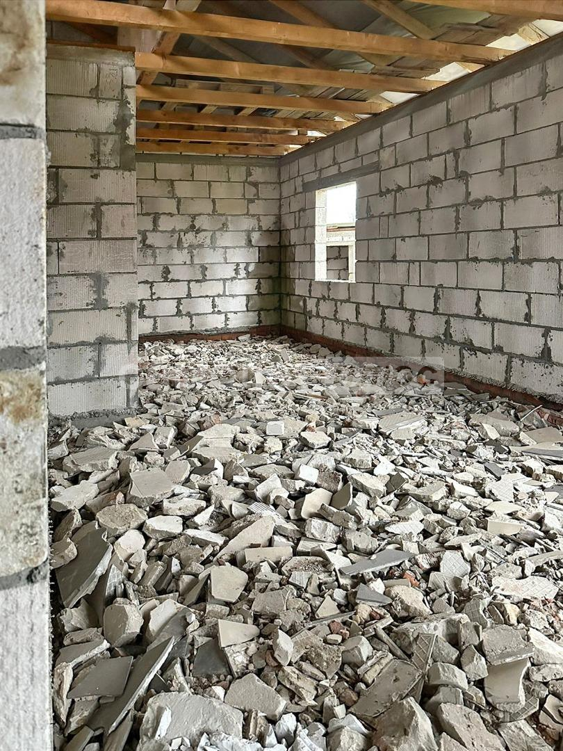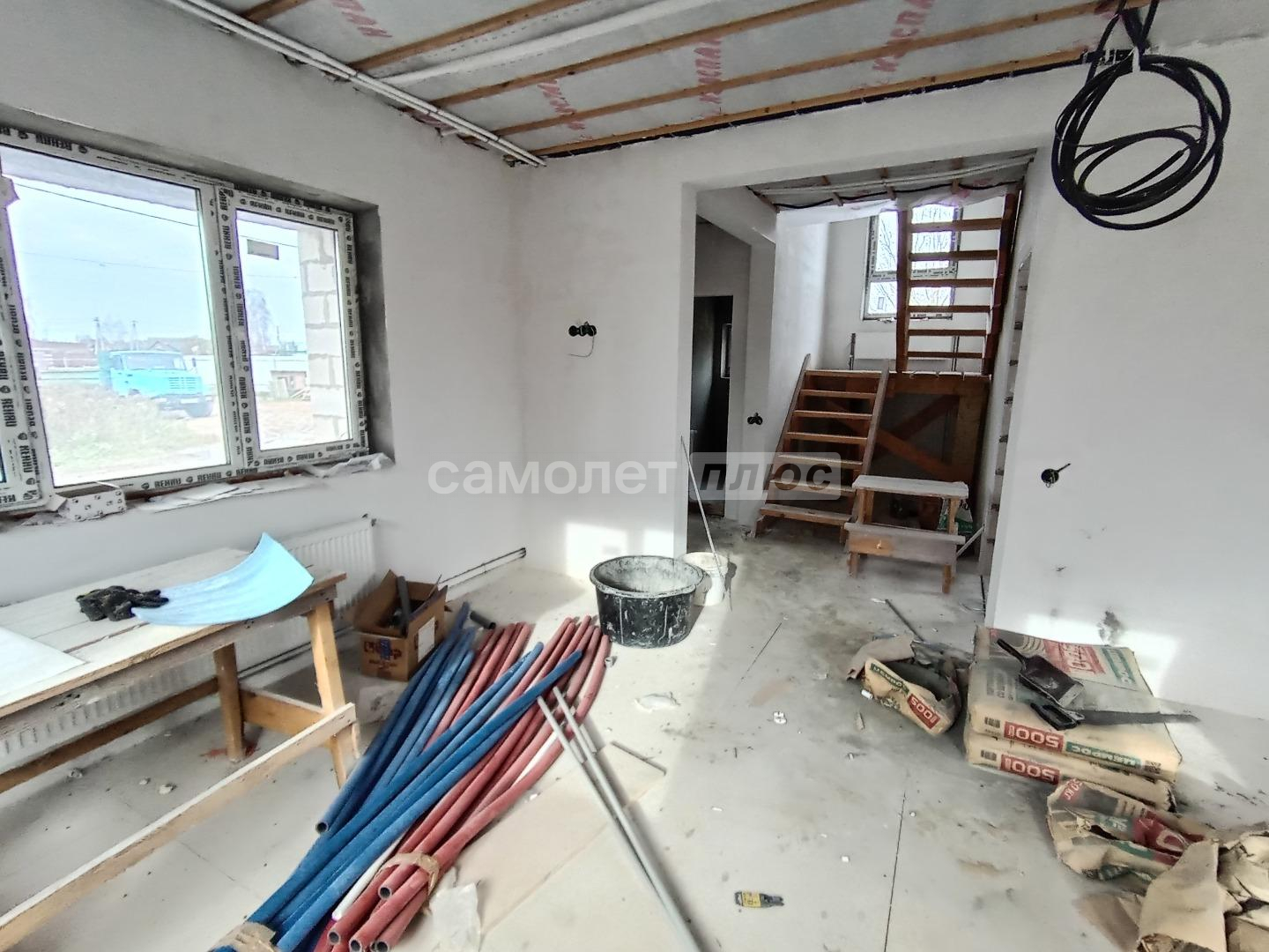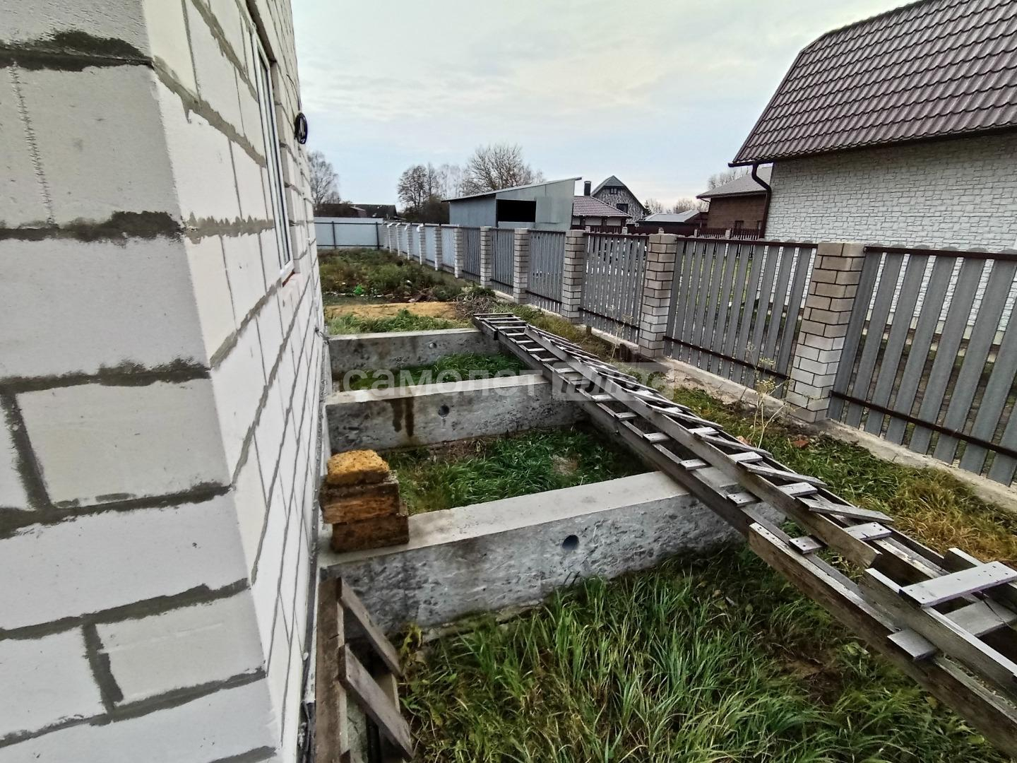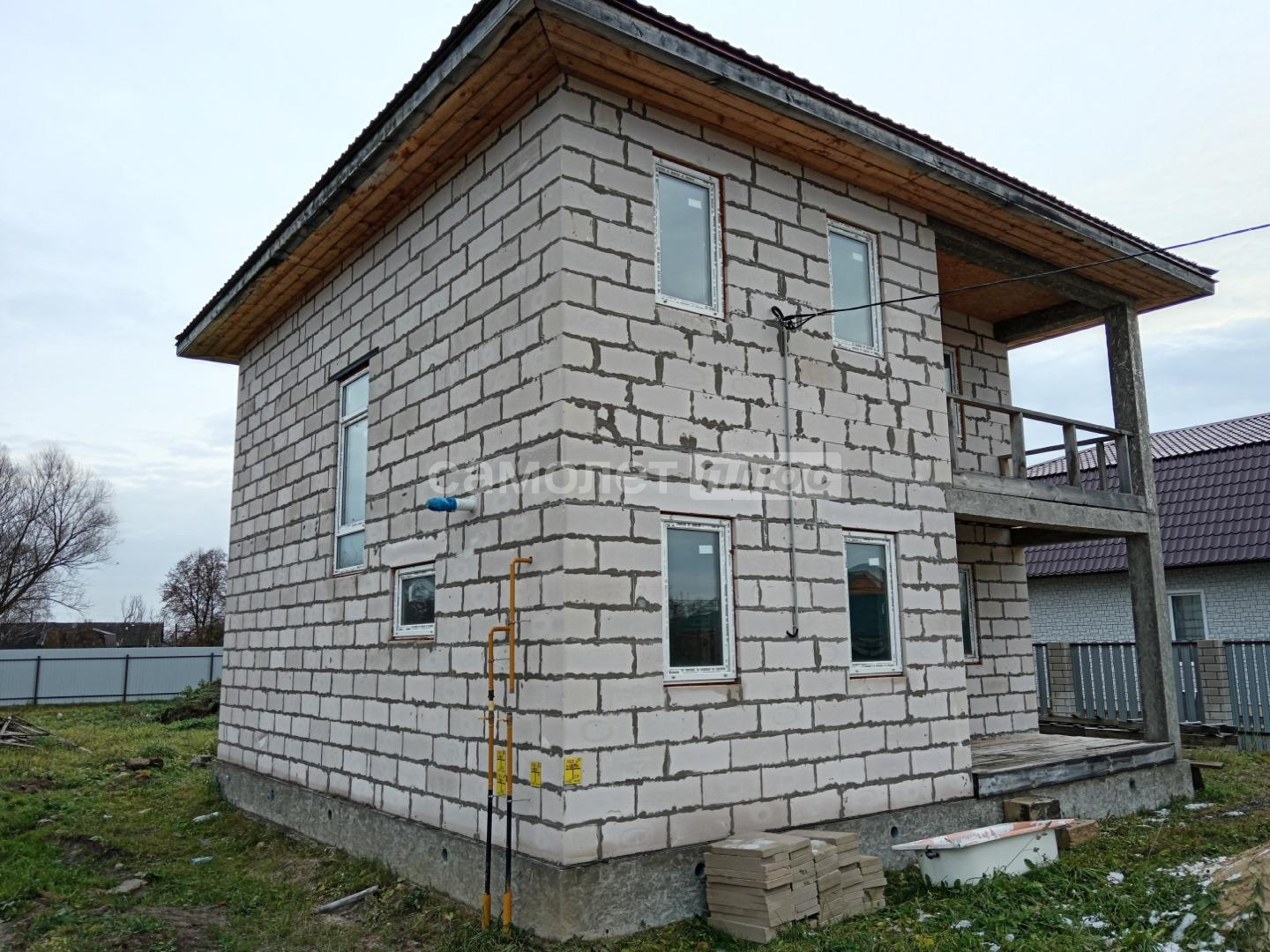 Дом из пеноблока + утеплитель., ленточный фундамент, бетонные перекрытие, без отделки, окна ПВХ.