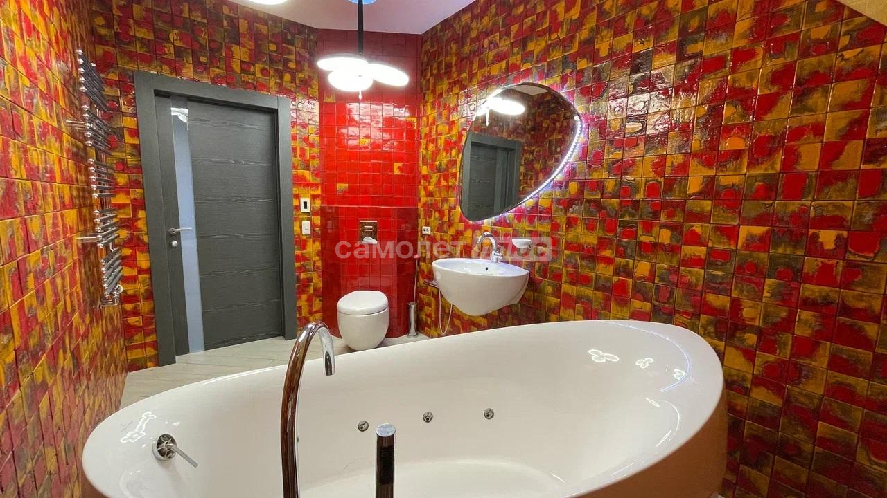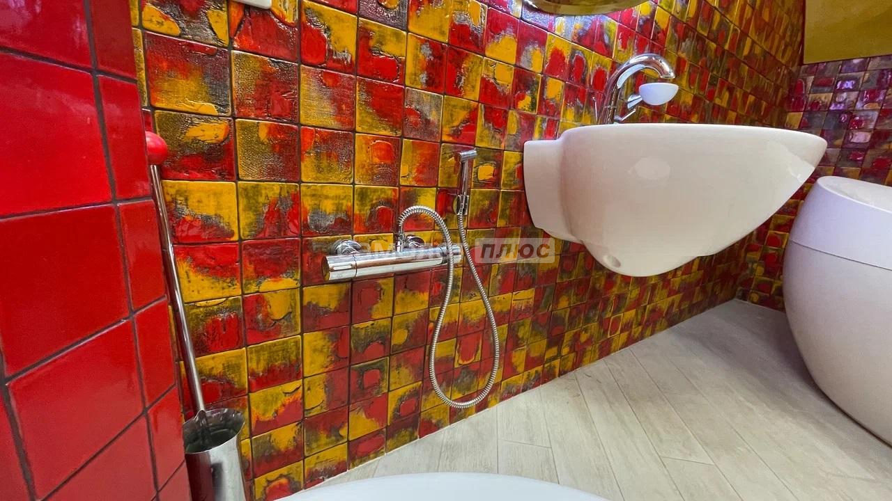 *** Санузлы: джакузи, инсталляция (2шт), раковина (2шт), биде villerroy& boch, красная глиняная плитка, Италия; плитка, Италия; авторское пано - мозаика ручной работы sicis, Италия; авторские зеркала, Италия; душевая в спортзале treesse, Италия
