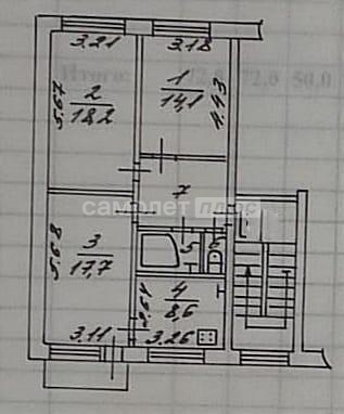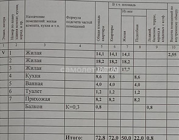 -Общая площадь 48.9кв.м, жилая 32кв.м,кухня 6.5кв.м.