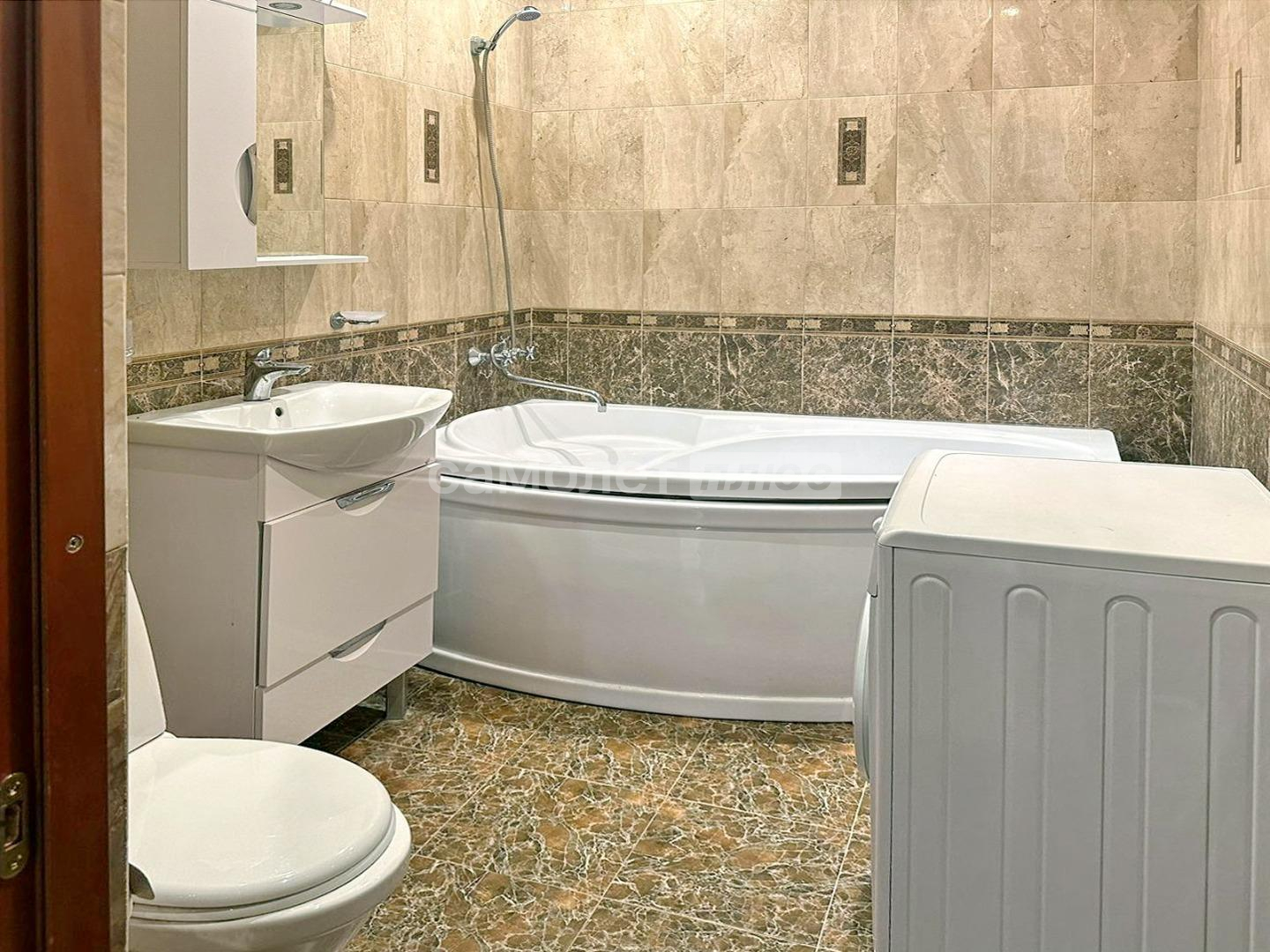 Хороший ремонт, есть мебель, вся бытовая техника включая посудомоечную машину. Два санузла с душевой кабиной и ванной. В одной из комнат есть свой санузел с душевой кабиной. В квартире индивидуальное отопление. Две большие лоджии застеклены. В шаговой доступности есть продуктовые магазины. Поблизости есть школы и детские сады