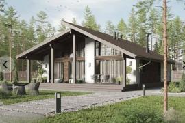 Дом Пикассо начинается с просторной входной зоны, слева от которой расположена приватная часть спальни, ванная комната с сауной, котельная, а справа- общественная, которая состоит из большой светлой кухни-гостиной с двумя выходами на террасу. Высокие потолки добавляют помещению объем.Панорамное остекление наполняет гостиную светом, а окружающая природа становится частью интерьера.В кухонной зоне хватит места для кухонного острова,а рабочую поверхность можно расположить под окном.