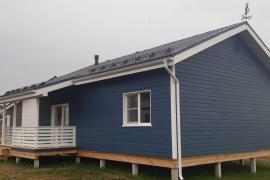 Дом размером 7,5х12 кв.м. установлен на сваях. Каркас стен: обрезной брус 40х100мм. Утепление стен/пола: 100мм. , перегородки: 50мм. (мин. вата «Knauf/Ursa») парогидроизоляция проложена с двух сторон. Кровельный материал: металлочерепица Grand Line толщина металла 0,45мм. с утеплением. Окна в доме ПВХ. На первом этаже расположены просторная прихожая, кухня-гостиная, спальня. На втором этаже две спальни. Отделка в доме вагонка. Дом расположен на участке 8 соток.
