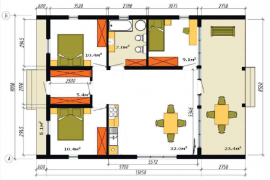 Самая популярная планировка: три спальни (10,4 + 10,4 + 9,1 кв.м.) и кухня-гостиная 32 кв.м., санузел 7 кв.м., холл 5,4 кв.м., терраса 23,4 кв.м.