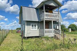 В доме две спальни, гостиная, просторная кухня с оборудованной мойкой, комната под санузел с бойлером под горячую воду 20 литров. Стены и потолки из бруса, полы и окна деревянные. Первый и второй этаж соединяет лестница из натурального дерева. Просторные входные зоны на первом и втором этажах. Имеется большое крыльцо и балкон-веранда на втором этаже, с которого открывается великолепный панорамный вид на поселок. Дом ухожен. В отличном жилом состоянии. Просторный и светлый. Полностью подходит для комфортного проживания с марта по ноябрь. Оборудован всей необходимой мебелью и техникой. Пригоден для круглогодичного проживания, если в дом завезти газ, который проходит по границе участка. Радиаторы отопления установлены по периметру дома.