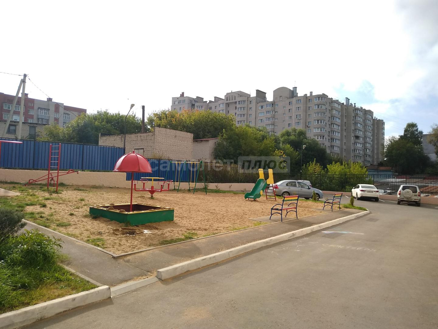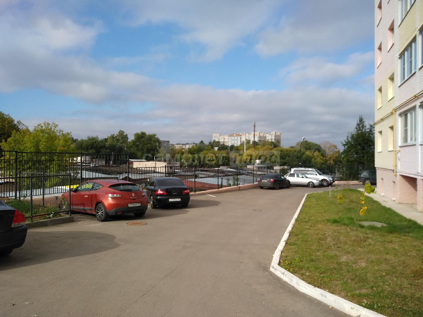 Территория огорожена, есть детская площадка и парковочные места.