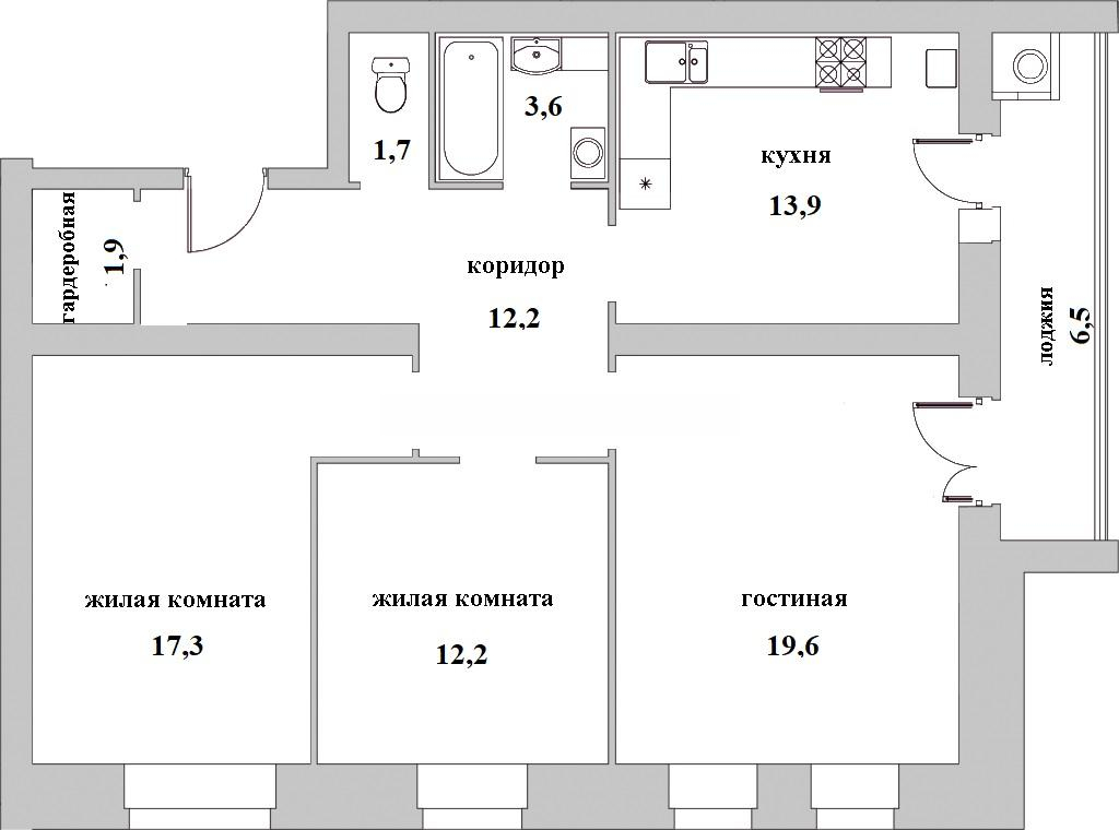 82,4 кв.м. для воплощения любых дизайнерских задумок, тем более, что стяжка пола по всей квартире практически идеальна.