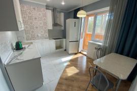 Общая площадь 40,4 кв. м., кухня 10 кв.м. (новый холодильник, чайник, индукционная плита, кухонная мебель), комната 18,6 кв.м.( диван, телевизор), санузел совмещенный ( стиральная машинка), есть шкаф купе, а также строенная объемная гардеробная для хранения вещей, в прихожей тумба для хранение обуви, лоджия застекленная утепленная с теплыми полами