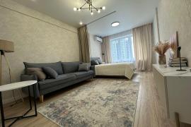О квартире: выполнен современный, качественный ремонт из дорогих, экологически-чистых материалов. Применено зонирование пространства комнаты: есть гостиная и 2-спальное место. Дорогая встроенная корпусная и мягкая мебель, новая бытовая техника (посудомоечная и стиральная машинки, кондиционер, варочная панель, духовой шкаф и вытяжка, холодильник и кофе-машина), все от лучших брендов - производителей. Есть оснащенная системой хранения, вместительная гардеробная, в которой можно разместить все необходимое. Все было продумано для максимально комфортной жизни! Остается все ! Заезжай и живи счастливо и богато!)))