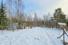 На участке расположен небольшой дачный домик с верандой. Участок граничит с лесополосой.